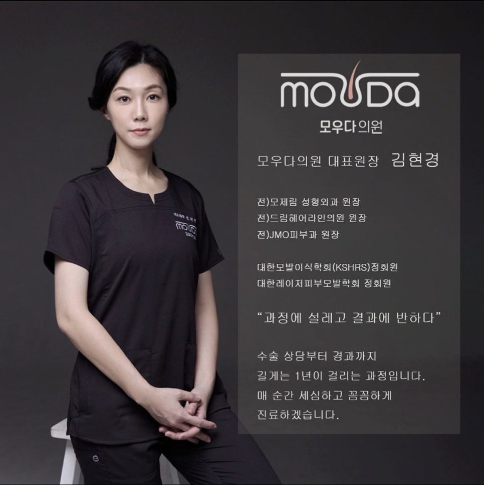 김현경 원장 소개 서울의 한 미용외과에서 12년 동안 모발이식 수술을 수행해온 김현경 원장을 소개합니다. 김 원장은 최신 기술과 전문 지식을
